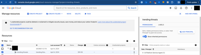 Next, go to IAM & Admin > Manage Resources , select your top-level project that houses your Google Cloud Run Service